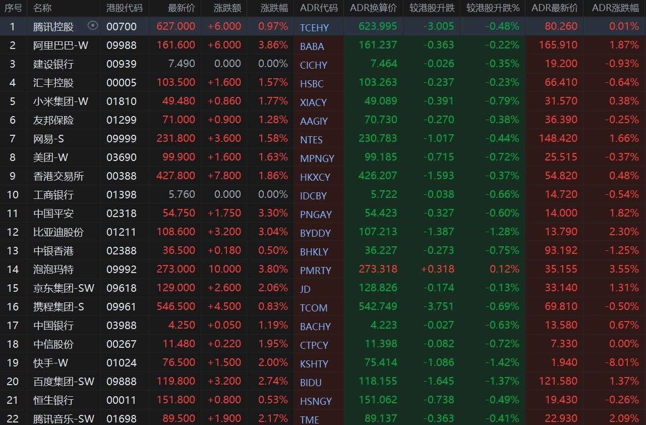 大型蓝筹股多量着落,汇丰控股收报103.263港元开云体育,较香港收市跌0.23%;腾讯控股收报623.995港元,较香港收市跌0.48%。
