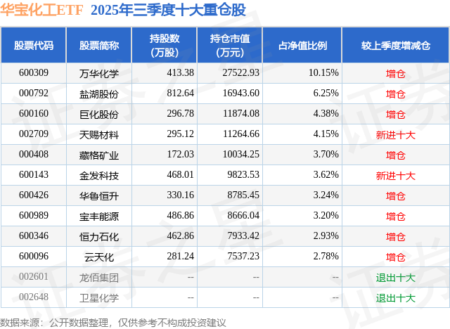 本站音问开yun体育网,日前华宝化工ETF基金公布三季报,2025年三季度最新范围27.12亿元,季度净值涨幅为26.95%。