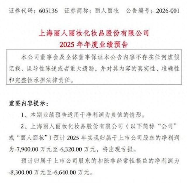 国内好意思妆代运营头部企业丽东说念主丽妆(605136.SH)再次拉响功绩警报。
