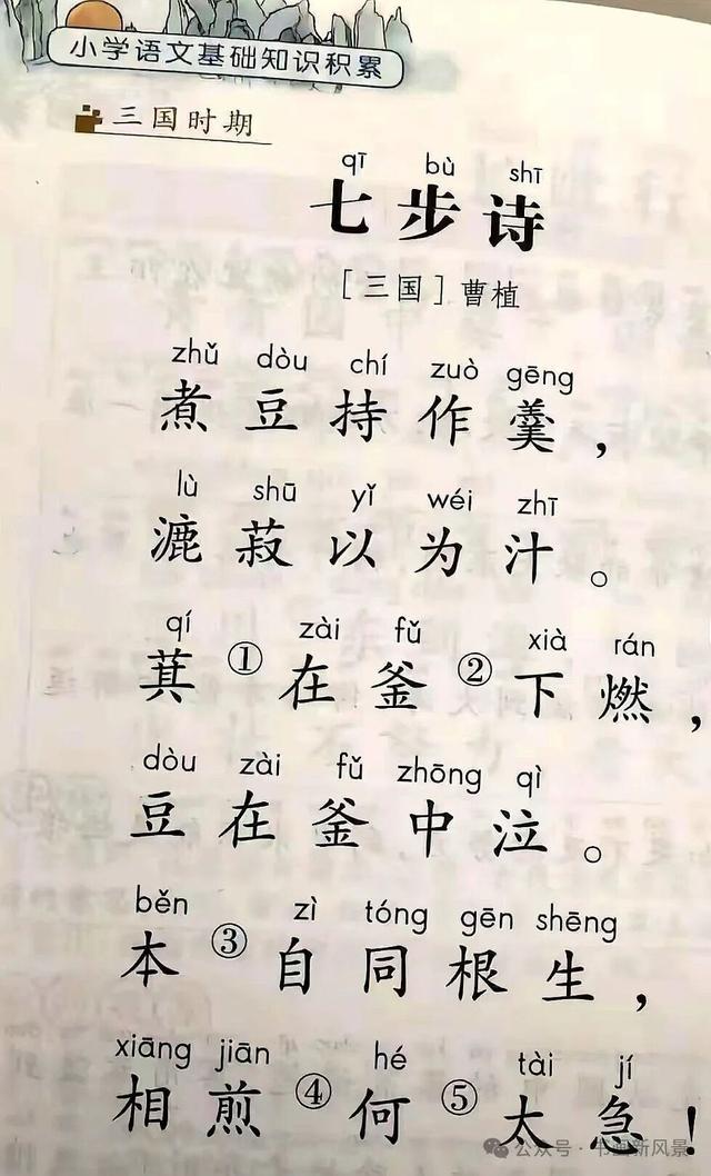不外近日有网友发文称,现时小学讲义里这首《七步诗》变了!